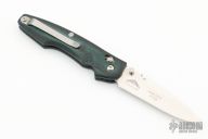The Warren Osborne designed 770 has the Benchmade Axis-Lock and is exceptionally light with its black/green G-10 frame. Stonewashed blade. No longer in production but an excellent gent's sized everyday carry - or a nice addition to a Benchmade collection. Has a couple light scratches, otherwise excellent condition. Comes with original box and papers. Limited Edition 279/500