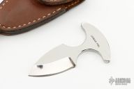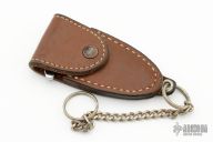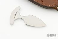 This Urban Pal by Cold Steel comes with a brown leather snap sheath with chain. Mirror polished chisel ground blade, .187" blade stock and 1.008" blade depth, integral construction. Has a few light scratches, otherwise excellent condition. NOTE: the black spot on the blade is a reflection of the camera in the mirror finish.