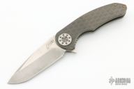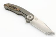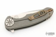 This F3 by Curtiss Knives features a two-tone stonewashed blade with a notched thumbrest and flipper. The handle has a textured titanium frame with a anodized tip up titanium clip and backspacer. Rides on bearings, nice detent and lockup. Includes a padded zippered case.  Excellent Condition.
