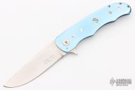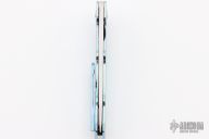 This LL-B Framelock Flipper by George Muller features a stonewashed blade with flipper. The handle has an anodized titanium frame with abalone inlays, stainless steel backspacer and an anodized titanium tip up clip. Rides on bearings, nice detent, blade seating and lockup. Comes with a zippered case and COA. Has a few light scratches, otherwise excellent condition.