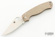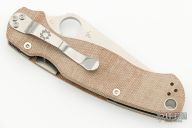 This Paramilitary 2 Linerlock Folder has a satin finished clip point blade with thumb hole and notched thumb rest. The handle has natural canvas micarta scales with stainless steel liners and stainless steel 4-way reversible clip. Comes with original box and papers. Excellent condition.