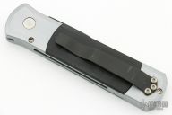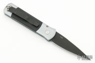 The Godson is Pro-Tech's smaller version of their popular Godfather automatic knife. As with all Pro-Tech automatics, the most prominent functional feature is the great coil spring action. The handles are hand satin finished prior to anodizing. Opening and closing is actuated by a well-positioned release button on the left frame. Has some light scuffs, otherwise good condition.