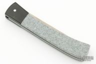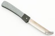 This Custom Tanto Auto by James Huckeba features a satin finished tanto blade with a black paper micarta frame with corian  scales. Signed and dated 1992 on the backspacer. Strong and fast coil-spring opening. Perfect function, nice lockup and action. Excellent condition.
