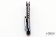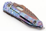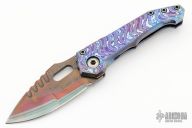 This XL Paragon by RSK Knifeworks features a San Mai Damascus blade with false top edge, thumbhole and fullers, .203" blade stock. The handle has a milled MokuTi frame with a matching tip up clip and backspacer. Nice detent, lockup and blade seating. Includes a padded zippered case.  Excellent condition.