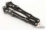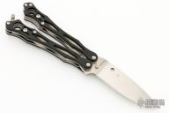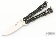This Spyderfly 2 Balisong by Spyderco has a satin finished blade. Handle is black G10 over stainless steel liners and stainless steel paper-clip style pocket clip. Comes with original box.  Excellent condition.