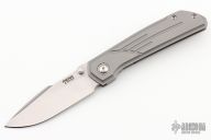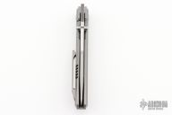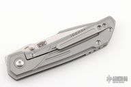 This Mula framelock by Enrique Pena features a hand rub satin finished drop point blade with swedge, notched thumbrest and dual thumbstuds. The handle has a bead blasted titanium frame with a titanium backspacer. Matching tip up titanium clip. Has a couple of light scuffs, otherwise excellent condition.