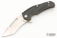 "Jason Brous began his efforts in knifemaking with the benefit of nearly 10 years of experience in CNC machining. His father owns a shop that specializes in the custom machining of high-precision components, mainly for the medical industry. Jason spent a lot of time in his father’s shop while growing up, and by his mid teens was actively helping out with production. His skills and knowledge steadily increased and by the time he was 20 he was a seasoned and very competent machinist. Jason's interest in knives actually began with art - specifically a style called “Bio-mechanical” - as practiced by one of his favorite artists, a Brazilian painter and tattooist named Lango. Biomechanical art (also called Biomech) is a surrealistic style of art that combines elements of machines and robotics with organic animal features. Intrigued by this style of art and its similarity to many fantasy knives, Jason figured that knifemaking would be a natural extension of his metalworking skills and an appropriate medium for his artistic ideas. Although he had no specific training in knifemaking, in 2010 he designed and made his first knife - a fantasy design with a Biomech flavor. Through persistent trial and error, Jason changed his style of knife design to focus on functional simplicity, while still maintaining a strong artistic signature. His early successes came in the form of a series of stout neck knives with dual finger-hole grips. Fans of these “Silent Soldier” neck knives began asking for other expressions of the design. Since then, Jason has created numerous variations including a clip point version, a tanto version and the very popular folder version called the Silent Soldier Flipper."
