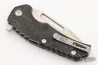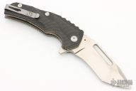 Introducing The New Reloader Flipper, A collaborative design between custom Knifemakers Jason Brous and Mikkel Willumsen. The satin etched D2 steel blade features a unique main hollow grind with a flat ground tanto style tip and a thick secondary swedge on each side. The Reloader utilizes an integrated flipper for quick blade deployment on a ball bearing pivot system. The handle scales are made from C-tek. The titanium liner lock is carbidized with tungsten carbide which provides a harder lock face surface and eliminates stickiness. The knife can be deployed either with the flipper tang or manually with the groove cut out in the blade. With stainless steel hardware and a reversible, deep set, tip up pocket makes this knife a great affordable every day carry blade. Comes with original box and papers. Knife is in Excellent condition, shows no signs of use/carry.