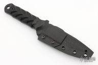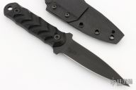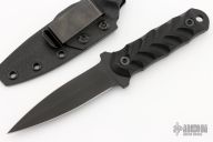 This Combat Dagger by Half Face Blades features a black double-edged with a full tang construction.  .149"Blade Stock.  1.048"Blade Depth.  The handle has black G10 scales.  Includes a black kydex sheath.  Includes a padded zippered case. Excellent Condition.