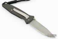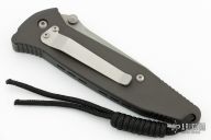This Socom D/A Auto by Microtech features a bead blasted partially serrated blade with notched thumbrest and dual thumbstuds. The handle has a black aluminum frame with non-slip inserts and a tip down stainless steel clip. Dated 1/98.  Excellent Condition.
