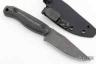 This Featherlite by Half Face Blades features a stonewashed S45VN blade with a textured spine, .112" blade stock, 1.121" blade depth, full tang construction.  The handle has linen micarta scales. Comes with a kydex sheath with clip.  Excellent Condition.