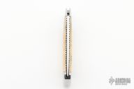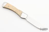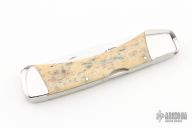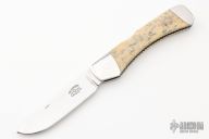 This Lockback by TD Bennett features a mirror polished blade with nail nick. The handle has dovetailed stainless steel bolsters, dyed camel bone scales, fileworked stainless steel liners and a stainless steel backspacer. Has a couple light scratches, otherwise excellent condition.