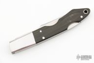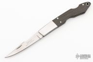 This Lockback folder from G Sakai features a satin finished blade with nail nick. The handle has stainless steel bolsters, black linen micarta scales, stainless steel liners, stainless steel backspacer. Has some scratches, otherwise good condition.
