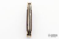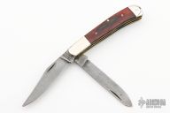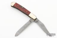 This Trapper by Parker-Edwards feature two Damascus blades with nail nicks. Nickel Silver front and rear bolsters with dymondwood covers. Brass liners and stainless steel springs. Has some light patina, otherwise excellent condition.