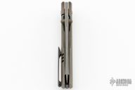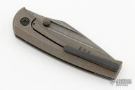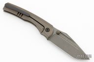 This BBM V2 by Nick Chuprin features an acid-wash blade with titanium thumbstuds. The handle has a milled titanium frame with bead blast and anodized finishes, blackened titanium pivot, hardware, backspacer and tip up clip with hidden screws. Rides on Skiff Made bearings, nice detent, lockup and blade seating. Comes with a zippered case. New from maker.