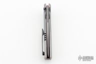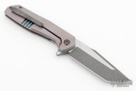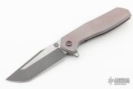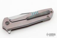 This Ragnarok V1 by Nick Chuprin features a tumbled harpoon milled blade and flipper. The handle has a two-tone anodized titanium frame with an oil slick zirconium pocket clip and a matching floating backspacer.  Nice detent, lockup and blade seating. Comes with a zippered case and COA. S/N 42. New from maker.