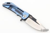 This Dominator 3.5 Flat Frame by Darrel Ralph has a two-tone blade with notched thumbrest and flipper. The handle has a vented carbon fiber and anodized titanium frame, anodized and tumbled titanium backspacer and tip up clip. Runs on bearings, nice detent, lockup and blade seating. Comes with zippered case. Excellent condition.