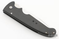 This linerlock by John Kubasek features a hand rub satin finished blade with notched thumbrest and single thumbstud. The handle has carbon fiber scales, inlaid jeweled titanium liner, carbon fiber backspacer. Nice detent, lockup and blade seating. New from maker.