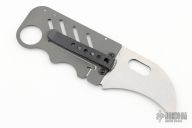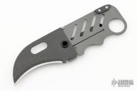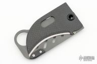 The Creditor II by John Kubasek is nearly the size and shape of a credit card. It features a D2 blade w/ carbon fiber laminate, titanium frame with carbon fiber scale, and black coated stainless money clip. New from maker.