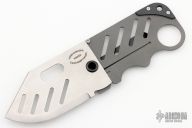 The Creditor II by John Kubasek is nearly the size and shape of a credit card. It features a D2 blade, titanium frame with carbon fiber scale, and black coated stainless money clip. New from maker.