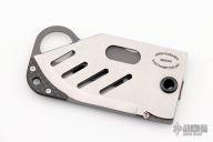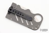 The Creditor II by John Kubasek is nearly the size and shape of a credit card. It features a D2 blade, titanium frame with carbon fiber scale, and black coated stainless money clip. New from maker.