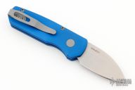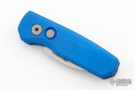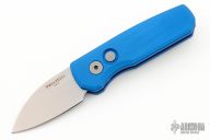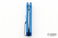 The Runt 5 by Pro-Tech Knives features a tumbled sheepsfoot style blade. The handle features a smooth blue aluminum handle with a bead blasted tip up stainless steel pocket clip. Comes with original box and papers. Excellent condition.