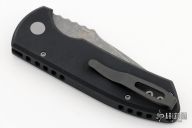 The Short Bladed Rockeye, or SBR for short, is a compact version of the outstanding full sized Rockeye Auto. Both knives are designed by Marine Corps knife designer Les George, who’s ergonomic hard use knives have been faithfully translated to automatic versions by Pro-Tech. The SBR features a compact design, with a 2.5″ blade that’s built for a multitude of cutting tasks. A pocket milled spine adds extra grip and depth to the design. The SBR features solid black hard coat anodized handles, blasted hardware, black DLC coated deep carry clip, and a stonewashed blade. Comes with original box and papers. Excellent condition.