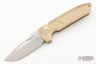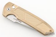 Pro-Tech Knives is proud to be the first choice of Police and Military professionals around the world. Pro-Tech Knives are built to serve and serve well. The Rockeye AUTO is a collaboration between Les George and Pro-Tech, and like all their knives it has a hard-hitting coil spring. It has a CPM-S35VN stainless steel blade with a false top swedge, thumb ramp jimping, and a reinforced tip for maximum penetration effectiveness without compromising integrity. The stonewashed bronze aluminum handle is extremely durable and makes this an ideal folder for daily carry. It's ergonomic, lightning-fast and just an awesome all-around blade.