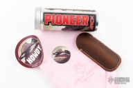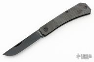 This Pioneer Jack slipjoint (Farmer's Knife) by Jack Wolf Knives features a DLC finished clip point blade with nailnick. The handle has pinched, fluted, and jigged titanium covers with a stainless spring. Comes with box, metallic tube with Sean Tiffany artwork, leather slip, and cloth. New from maker!