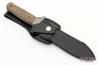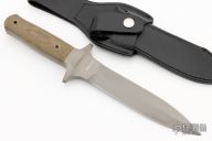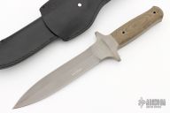 This is a full integral dagger, drop-forged out of one massive piece of 440C stainless steel. This technically challenging procedure guarantees the maximum in stability. You can't hold it in your hand without recognizing its unbelievable strength and sturdiness. A true masterpiece, both for the collector and the user. The fully double-edged 7" blade provides an impressive appearance. Carefully sculptured green canvas Micarta scales provide an excellent grip under all conditions. Comes with a black nylon sheath. Has some scuffs and scratches, otherwise great condition.