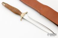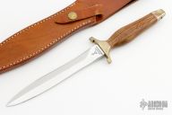 The Mark II is one of the best-selling knives of all time. First introduced in 1966, this tactical knife is serialized for collectors. This knife is Serial# 001758. It has a double edged mirror polished blade with .233" blade stock and .936" blade depth, hidden tang construction. The handle has brass guard and butt, wood grip and red/white spacers. Comes with original brown leather sheath and original box. Excellent condition.
