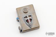 XL Crusader Cross w/ Ruby Eye Warrior Skull and .45 Auto Lighter. Comes with Steel Flame case. Excellent condition.