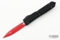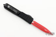 This Ultratech OTF automatic by Microtech features a D/E red blade. Black aluminum contoured frame with black tip down stainless steel clip. Dated 03/2022 and s/n 76943. Includes original box and papers. Excellent condition.