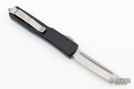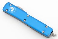 This OTF Ultratech T/E LEO 123-10, by Microtech features a tanto style blade made from m390 steel. The handle is composed of Blue and Black anodized aluminum. The pocket clip is tip down carry and is complimented with a glass breaker. Excellent condition. Comes with original box.