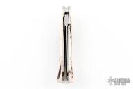 "Kansei Matsuno was born in 1951 in Japan. He found very few knives which met his requirements, so he decided to make knives himself. He used difficult technology, using a file to shape the steel billet. He made knives in this way for two years and then bought a simple belt-sander. Needless to say that productivity and work quality has improved. Soon, his friends began to ask him to design and built knives for them. Then, in 1998, Kansei started manufacturing knifes. In 2001 Kansei visited an American knife show for the first time, and in 2002, the quality of his knives improved and he was admitted for a probationary period in the American Knifemakers Guild. Today Kansei prefer to create frameworks folding knives made of titanium, stainless steel blades are VG-10b, OU-31, CV-134. Lining the handle makes it out of steel G-10, deer antler, pearl and coral. He changes the design of knife depending on customer requirements. Now, Kansei is manufacturing a series of first-class folding knives with different original designs and high quality."