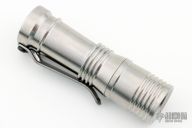 This Ion flashlight from Mitch Lum/Laulima Metal Craft and Joshua Dawson features a titanium body and pocket clip. 219C 4000K triple emitter. Carclo Narrow Spot optic. Flat sapphire watch "glass" window. Uses a single 18350 battery. Battery is not included.  This piece comes with a custom pouch and original COA, dated 09/01/23.  New from maker.