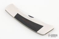 This Folding Sportsman by Gerber features satin finished blades with nail nicks. The handle has stainless steel covers with wood inlays, brass liners, stainless steel spring. Has a couple light scratches, otherwise excellent condition. Comes with original brown leather sheath.