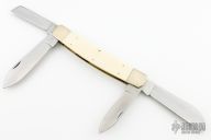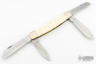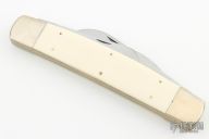 This Giant Slipjoint by Frost Cutlery has satin finished blades with nail nicks. The handle has nickel silver bolsters, synthetic ivory covers with nickel silver pins, brass liners, steel springs. It has some scratches, otherwise good condition.