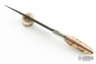 Chris Peterson is a renowned knifemaker based in Salina, Utah. He has over forty years of knifemaking experience and is an ABS Master Smith. Chris served in Vietnam where he learned the life saving importance of a good dependable knife. Chris forges all of his own steel and each knife blade he makes has 1200 layers of steel in it3. He uses O1 tool steel and A36 mild for his Damascus knives. He has also made knives with meteorite, although he hasn’t done so recently due to the high cost of production. Chris is a member of the organization of mountain men, known as the American Mountain Men, and carries the ensignia cartouche of "No Sweat" hense the branding of his knives. His brand is a encircled sweat drop with a slash through it. signifying "No Sweat" American Mountain Men is an association dedicated to preserving the traditions and ways of the nation’s greatest explorers and pioneers, the Mountain Men. The organization was started in 1968 by Walt Hayward. The American Mountain Men aim to conserve the nation’s remaining natural wilderness and wildlife, and to enable their members to survive alone, under any circumstances, using only what nature has to offer. They are interested in the quality of members, not the quantity, and their primary characteristic is to be a Brotherhood of Men. Members of the organization strive to teach, share, and learn the arts and skills of the original American mountain men. They also aim to embrace the total lifestyle of the original Mountain Men, researching all they can about these rugged individualists and then going into the field to practice what they have learned. They share their findings with other members through their magazine, "The Tomahawk & Long Rifle" The organization is not large, but it is worldwide. They work within the 1820 – 1840 era. The sense of camaraderie and the shared endeavor are more important to them than individual gain. As a member Chris will instruct interested parties in survival techniques in the wild. His son, Michael Peterson, also followed in his footsteps and became a bladesmith.