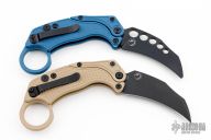 Reat Knives is making yet another splash with the EXO-K Gravity Karambit Knife. That's right: it's both a Karambit and a Gravity Knife. By holding down the button and flicking your wrist, the blade and frame will rock back and forward again, deploying the wickedly-curved blade into the open position where it locks. Push the button again and reverse the steps to close the knife. Thanks to its reversible pocket clip, you can carry it to your preference. And speaking of preferences, finger rings aren't for everyone. In the case of EXO-K, it's removable! Like any good trick, operating this attention-grabbing knife will take some practice—which can be done safely with the included blue trainer—but once you have it down, you'll be flipping this bad boy into action. It's great for day-to-day cutting, fidgeting, and self-defense situations. The Reate EXO-K takes pocket knife fun to a new level with an innovative, practical, and entertaining design. It's built to Reate's exacting quality standard with tough and affordable materials, like aluminum and Bohler N690 steel, to keep the cost down. The EXO-K is truly a knife like no other.