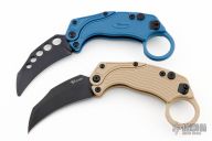 - Hawkbill-style Karambit blade made from Black PVD Bohler N690 steel.