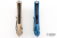 - Ceramic-coated tan aluminum handle scales with frag-texture milling and a titanium backspacer.