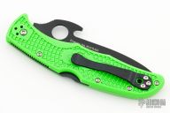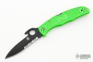 This limited edition Spyderco Endura was made for the Usual Suspect Network in a run of 600 pieces. USN logo on the black blade, thumbhole, wave feature and notched thumbrest, partially serrated edge. Has green FRN handle with black stainless steel clip, 4-way reversible. Includes original box and paperwork. Excellent condition.