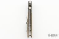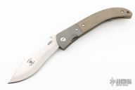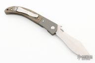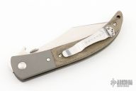 This custom Gypsy Jack features a satin finished recurve blade, dovetailed bead blast titanium bolsters, and green micarta scales, bead blasted titanium liners, and a tip up stainless steel clip. Wave feature. Includes original box. Excellent condition.