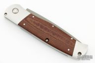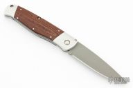 This auto by Van Elkins features a grey coated drop point blade. The handle has a silver coated aluminum frame with maroon linen micarta inlays and a stainless steel backspacer. Nice action, lockup and blade seating. Excellent condition. Comes with a zippered case.