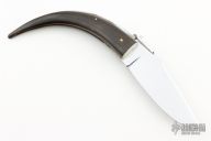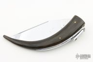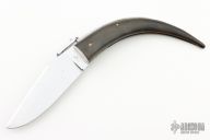 This knife features a large mirror polished clip point blade.  The handle features horn scales over nickel silver liners.  The lock is disengaged by pushing down on the steel lever.  Light scratches are visible, otherwise the knife is in good condition.  The blade is marked, "GCCO".