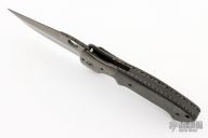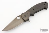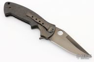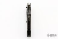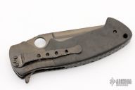 This Kasper Flipper from Pat & Wes Crawford features a DLC clip point blade with false top edge, thumbhole and flipper, and fileworked spine. The handle has a DLC titanium jeweled and dovetailed bolsters, marble carbon fiber scales, DLC titanium liners with fileworked edges and jeweled interior, marble carbon fiber backspacer. Matching titanium tip down clip. Excellent condition. Includes zippered case. Nice detent, lockup and blade seating.