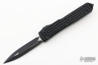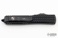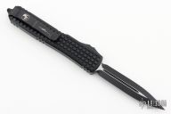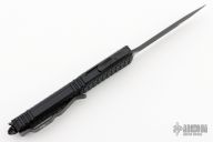 This Ultratech OTF automatic by Microtech features a D/E black DLC fluted blade. Black aluminum frag pattern frame with black tip down stainless steel clip. Dated 12/2022 and s/n 172. Excellent condition. Includes original box and papers.