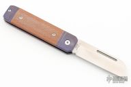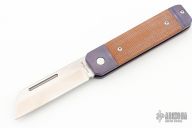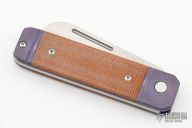 This Ohio River Jack by C Risner Cutlery features a satin finished blade with nail nick. The handle has an anodized titanium frame with natural canvas micarta inlays and a stainless steel spring. Comes with original box. Has a few light scuffs, otherwise excellent condition.