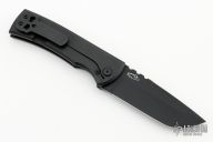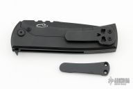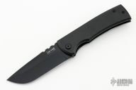 This Chaves Ultramar Redencion drop point features a black PVD blade. The handle is made up of black PVD titanium, skull pocket clip (positioned for tip up carry), and a matching titanium backspacer. Comes with original box and an extra regular titanium pocket clip. The knife opens with the use of Lee Williams' Kick Stop flipper.  Includes the original box. Excellent condition.